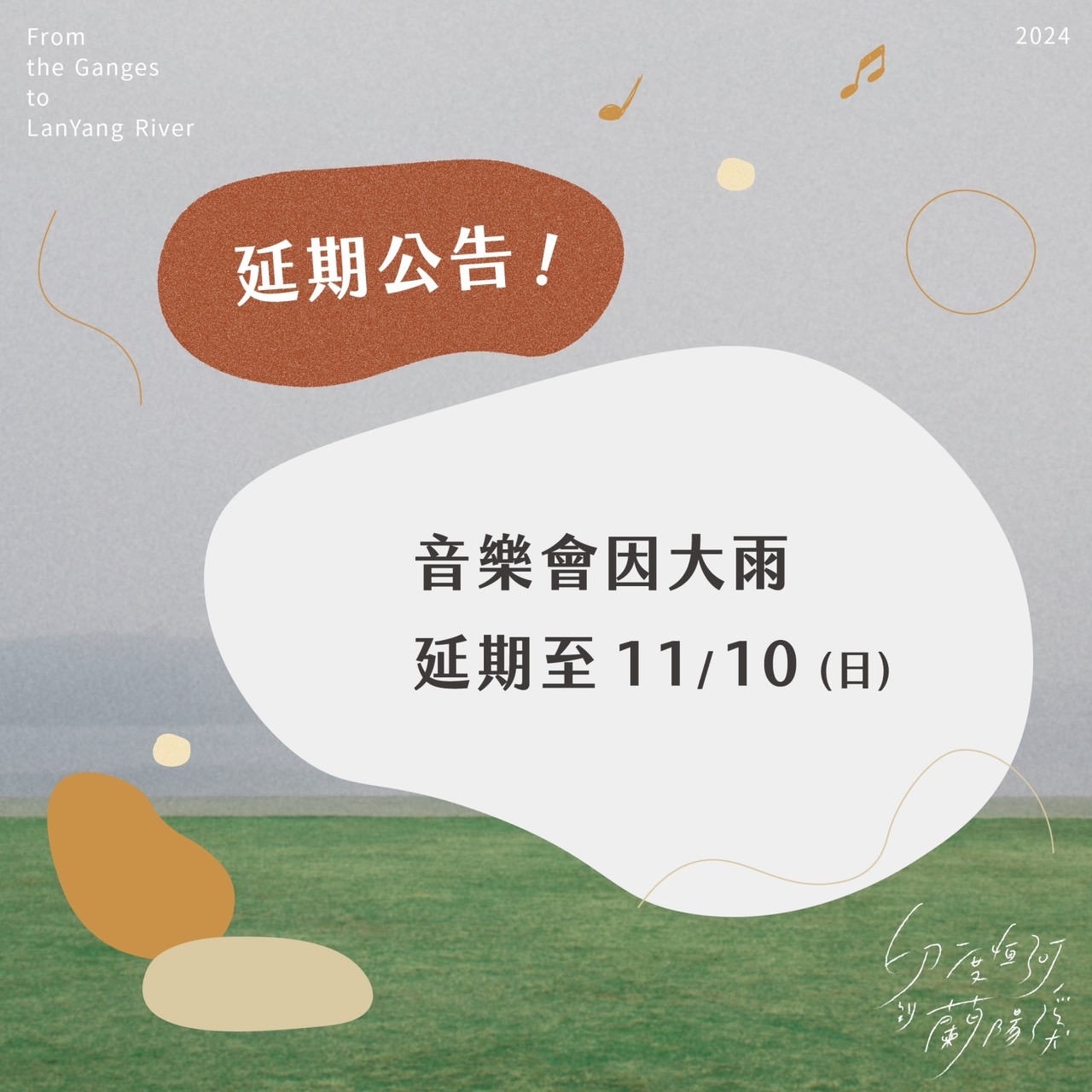 原訂2024/10/26(六)羅東運動公園《秋季草地音樂會》:經主、協辦單位、演出者商議後,戶外草地音樂會因連日下雨將延至2024/11/10(日)舉行,特此公告。