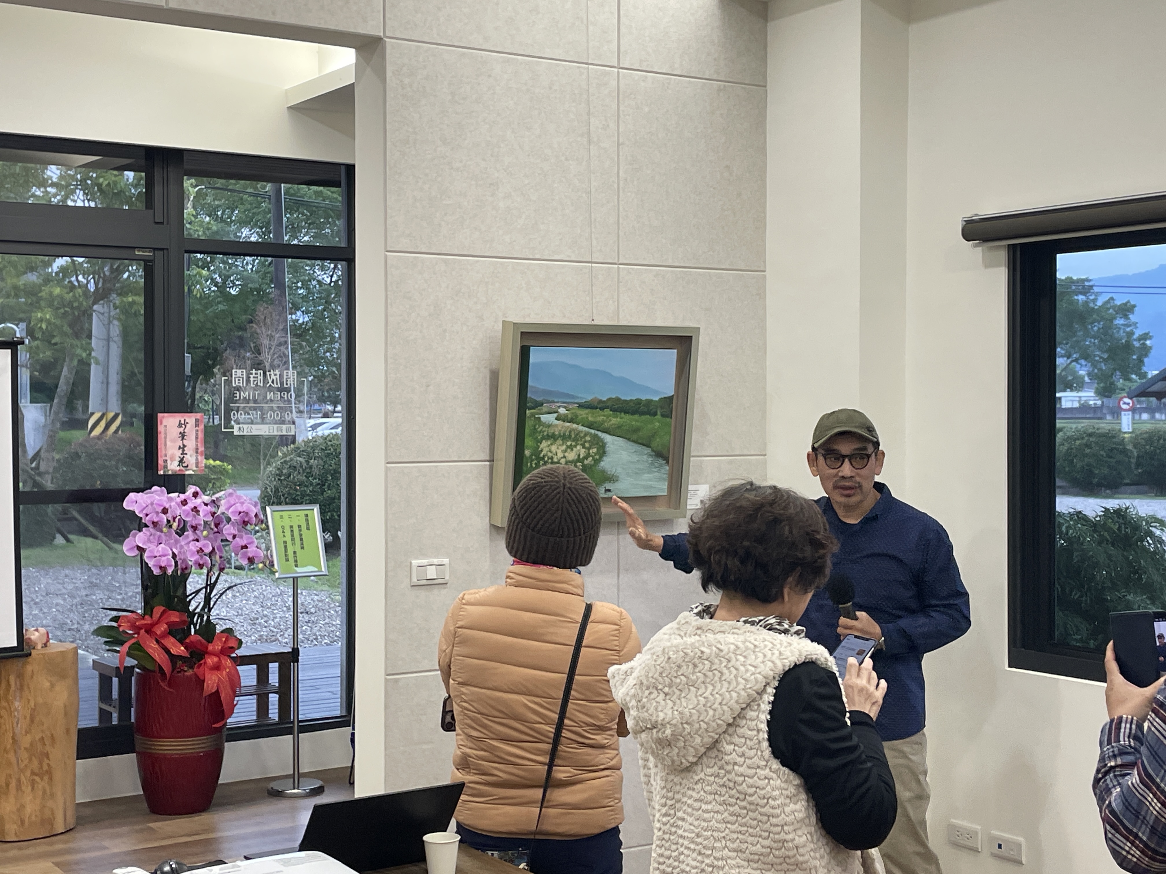 接著再「與畫家同行:畫作導覽」,從作品中窺探藝術家的創作小宇宙,畫家心中對畫面的想像,每處畫面的故事分享,深入欣賞十餘幅小品油畫作品,小而精緻更能讓創作者專注,以凝練的筆觸呈現自然的靜謐與詩意,每幅畫作都潛藏著與安農溪相遇的瞬間。