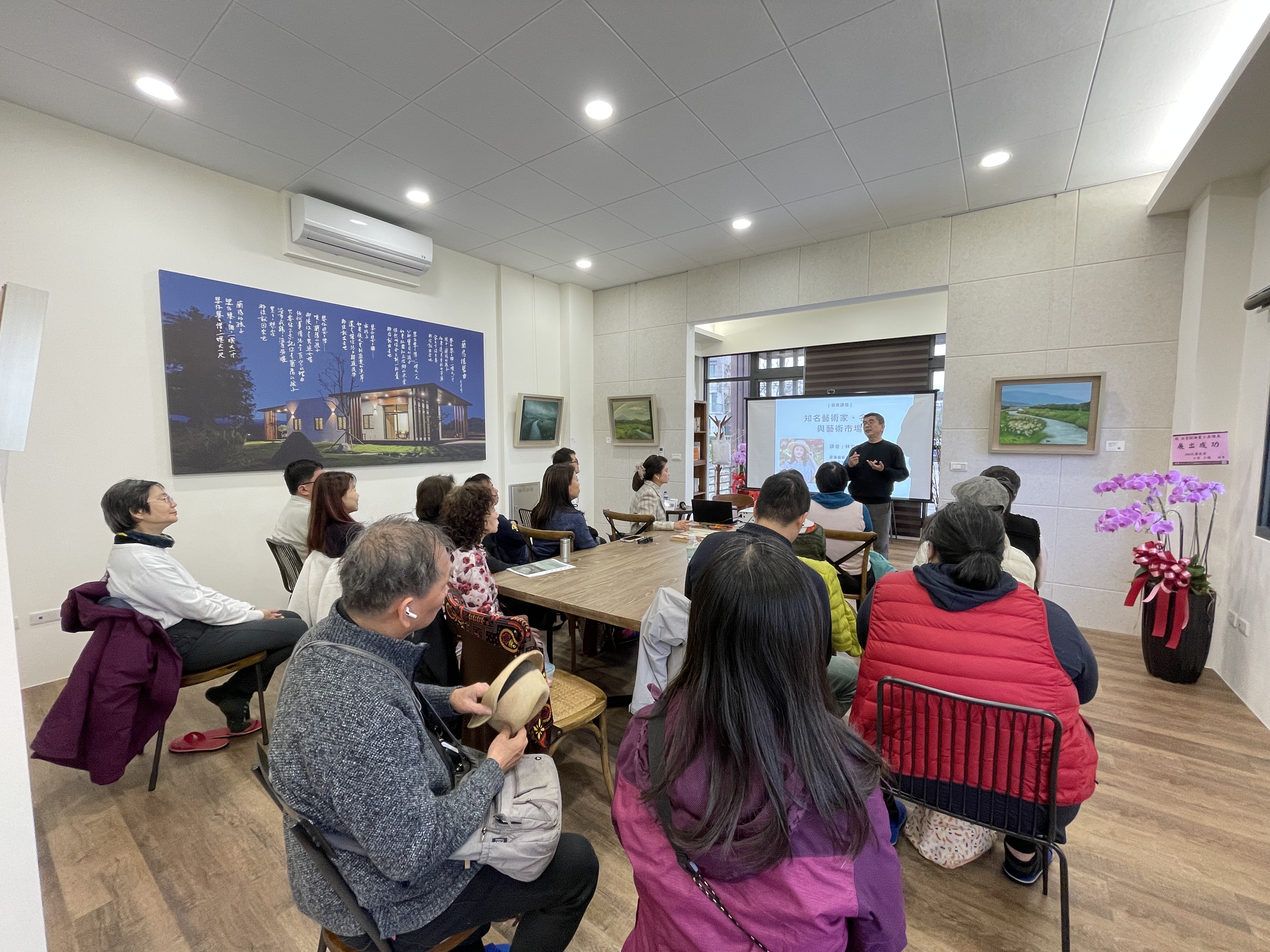 講師以深入淺出的方式,介紹多位台灣及世界知名藝術家與其代表作品,從藝術史背景談到各自的創作理念,再延伸至藝術品如何在拍賣市場中形成價格,讓學員不再只是「看熱鬧」,而能入門理解一幅作品為何值得被珍藏與欣賞。