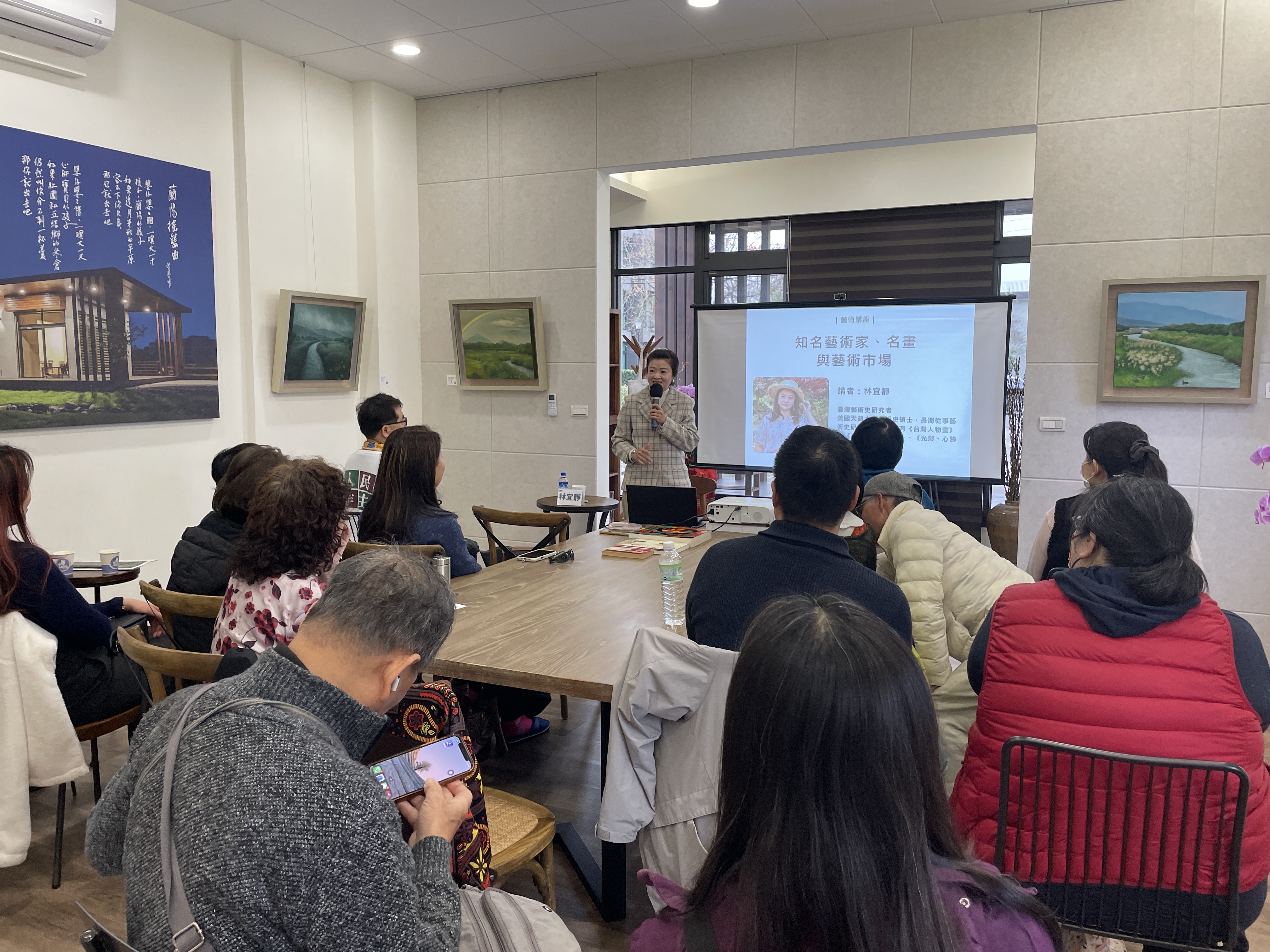透過精彩的PPT分享與生動解說,現場彷彿化身為一座由台灣出發、連結世界的跨國美術館。學員們在林宜靜老師的引導下,認識作品如何被典藏於世界各大美術館與私人空間之中,欣賞經典與當代名作,同時也深入了解台灣極具特色的當代藝術家,感受本土創作多元而豐富的樣貌。