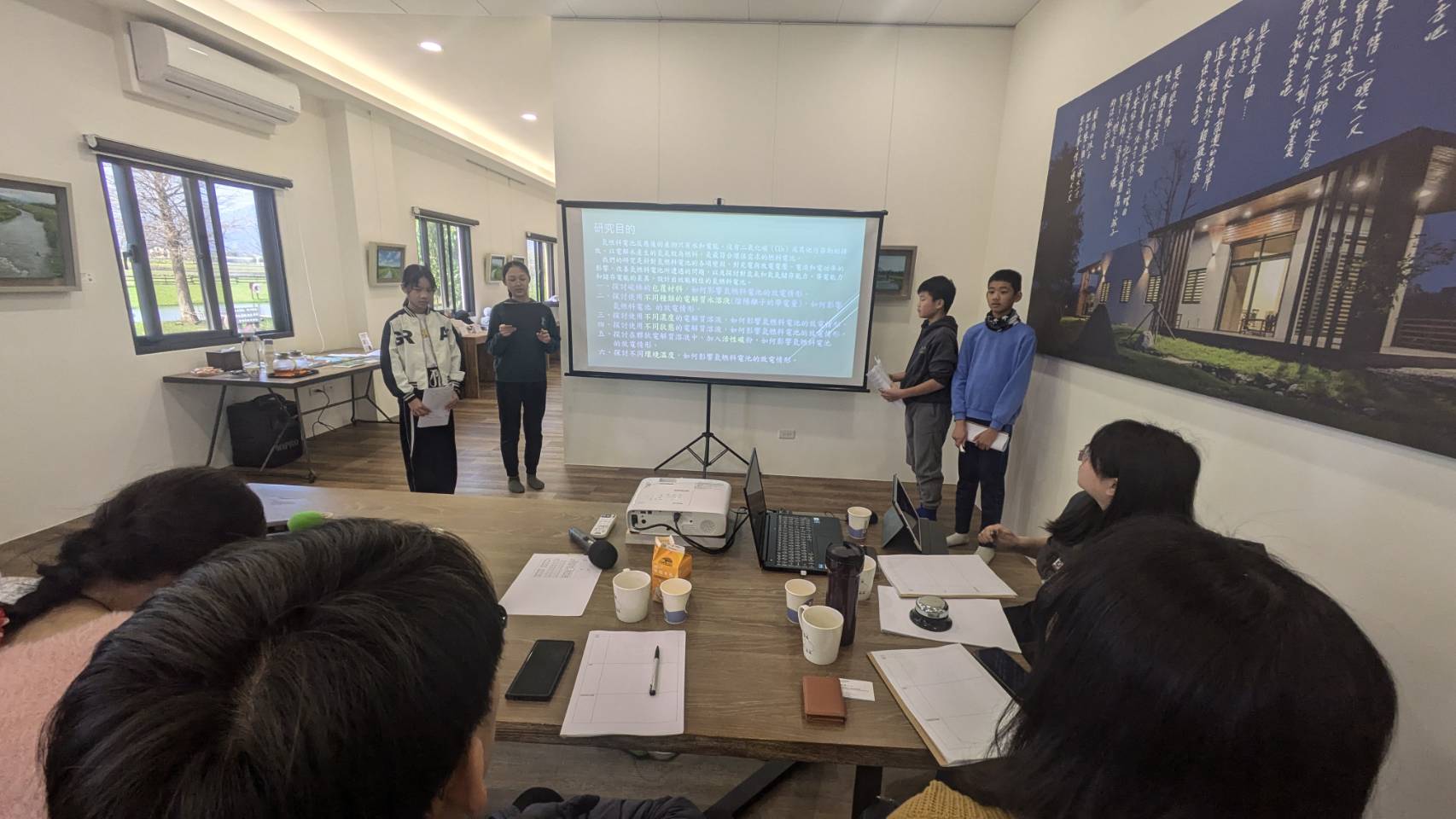 在各校指導老師的用心帶領下,同學們帶著自己的科學研究成果登台分享。發表會開始前,較早抵達的小組在場外反覆練習、相互提醒;還沒上場的同學則專心觀摩其他隊伍,期待讓自己的報告表現得更好。