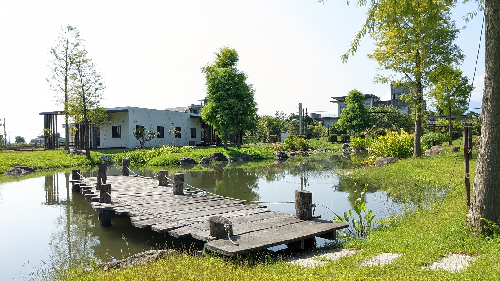 佔地廣闊的悠靜花園,園內周邊有四季果樹,蒼勁的落羽松,晝舒夜卷的花中睡美人,空氣中飄著淡淡的玉蘭花香、野薑花香、草香還有調皮微風輕吹的鞦韆,這裡是野鴨、白鷺與各種鳥類逐漸習慣棲息的生態園區,就坐落在陳定南紀念館正對面,值得您將寧靜的心靜置其間。