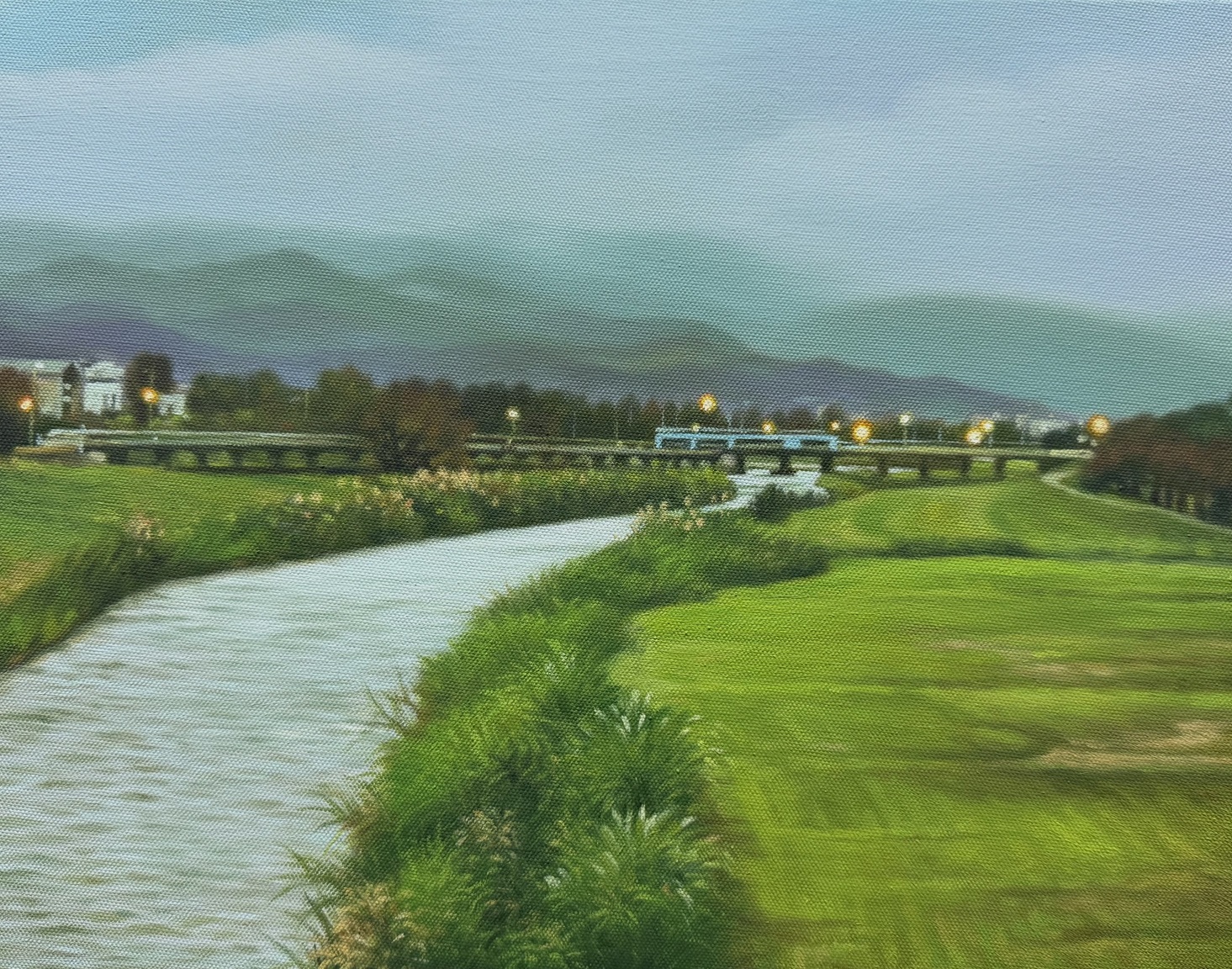 我沒有刻意安排主角,讓整幅畫成為一種氛圍的流動。光線不再耀眼,卻更能觸動心底的柔軟。《暮野微光》是我對黃昏的凝視、對安農溪靜謐時刻的讚頌,更是一種心境的投射——在光將隱沒之前,我們是否也曾在這片微光中,找到片刻的安息?