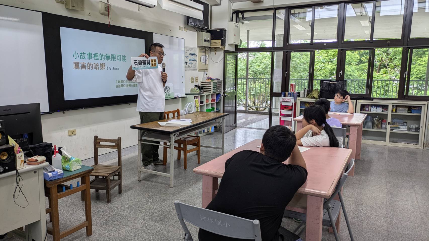 4/24原先安排的9:30上課前一晚得知臨時改成10:30,時間雖然稍有壓縮,但歷經幾所學校下來的豐富經驗讓韋岐老師仍舊淡定有序的完成在柯林國小的第一場教學。