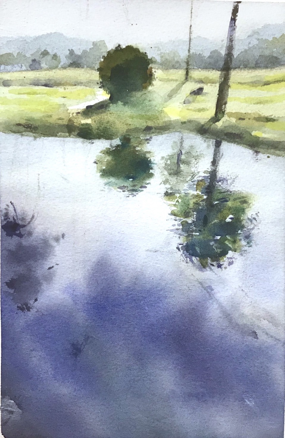 我簡化了繪畫流程,特選五個顏色(黃、洋紅、咖啡、淺藍、鈷藍),相互混色,如同卓大哥說的,撥雲見日,拆解了水彩的神秘面紗,將調色的概念融入漸層的水彩實作體驗,老師們驚訝連連說,太神奇了!原來這麼少的顏色,可以調出許多豐富的色彩變化。