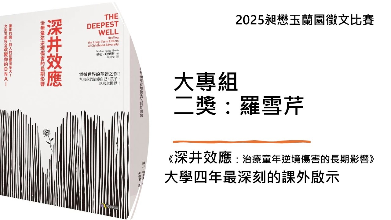 即將告別大學,我回首這四年,《深井效應》是我最珍愛的課外旅伴。它看似晦暗,卻處處流淌真實的血與淚。每個故事都是一堂課,教我凝視創傷的深井,也讓我看見復原的微光。這本書不僅深化了我對童年逆境的領悟,更如火炬,點燃了我對社工使命的熱忱。當我合上書頁,那光芒未曾熄滅,而是融入我的血脈,亦是我大學歲月中永不褪色的啟示。