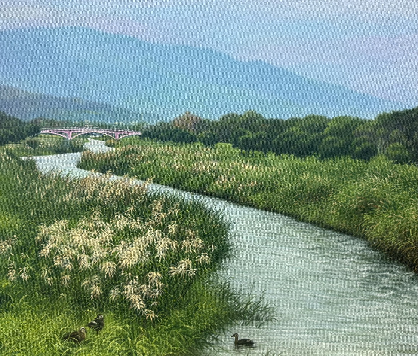 這幅畫,是自然的樂章,也是生命的片刻。蘆岸不語,卻深情;溪水不息,卻溫柔。每一筆光影、每一層色調,都在訴說著一種歸屬——對土地、對靜謐、對那份不言而喻的深情。