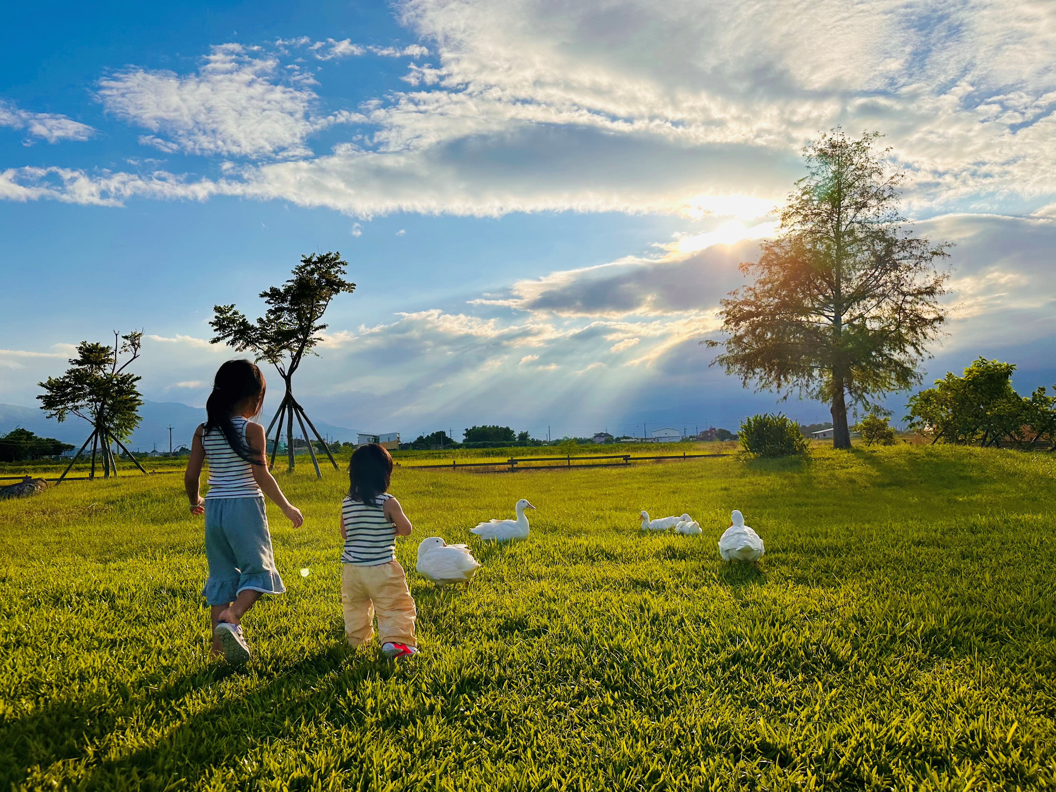 評審評語:兩個小孩追逐鴨群,映襯著天光,提供一種充滿希望的感受。