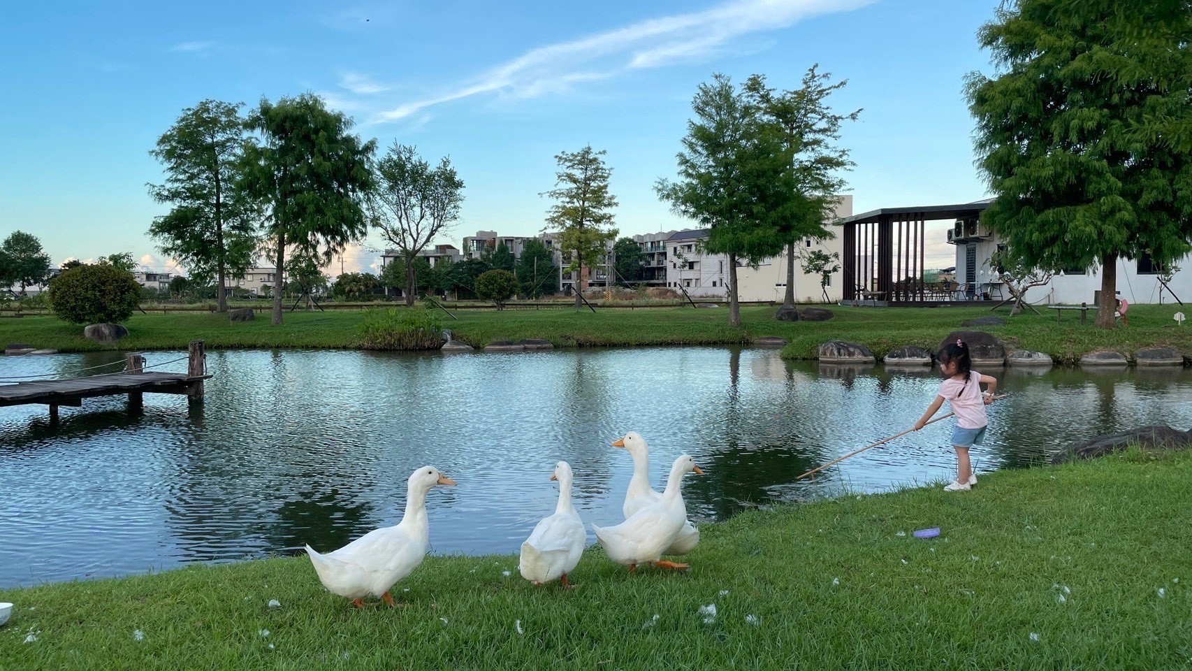 評審評語:四隻鴨鴨呈現不同姿態,小女孩手持竹竿擾動池水,整幅作品提供一種生機盎然的感受。