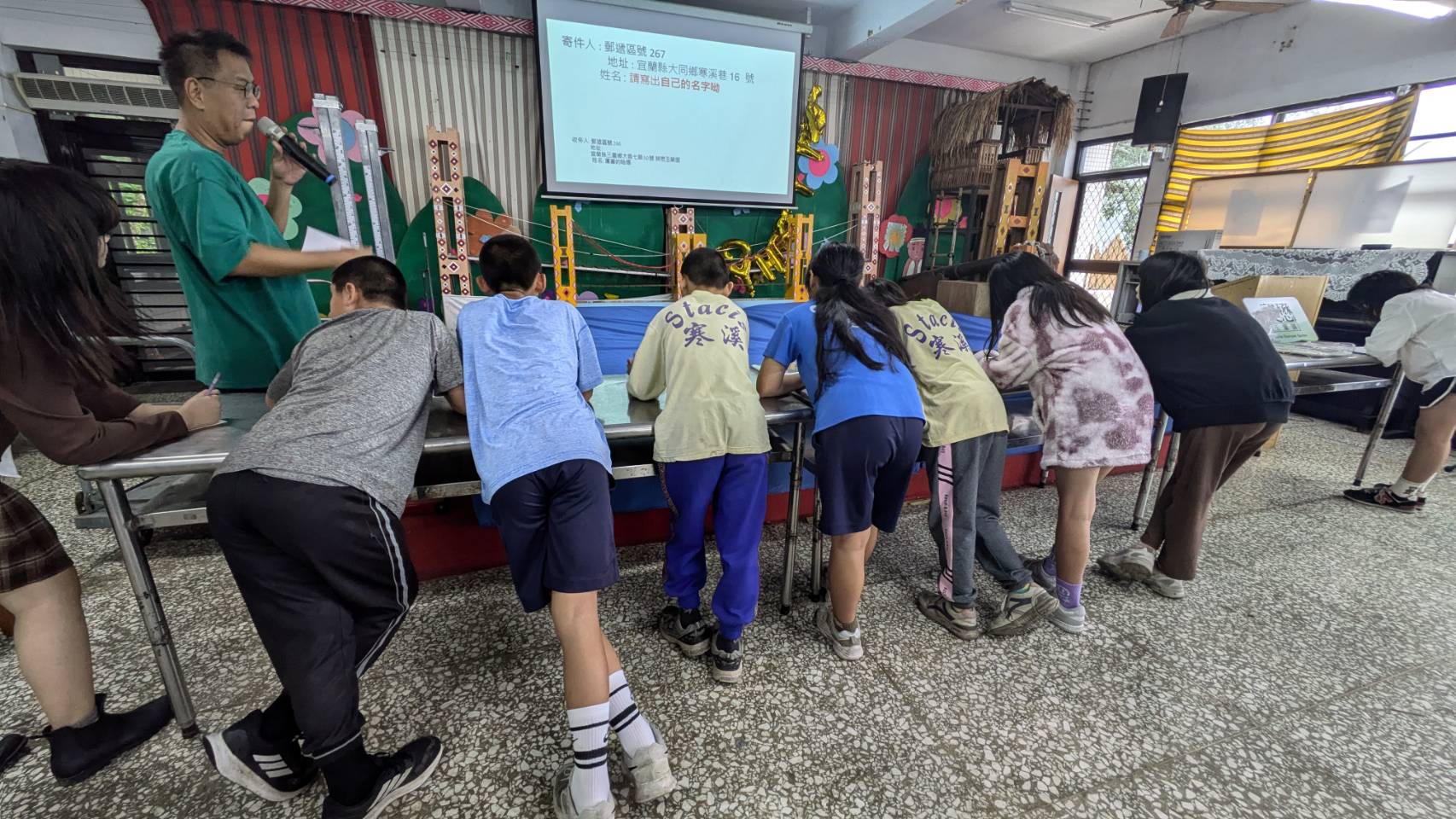 十分鐘過後,球鞋上伴隨著泥土、黏著小草再次回到教室,繼續聽著哈娜的故事,拿著鉛筆奮力的將自己腦袋裡的哈娜,投映在八開畫紙中,把想對花貓哈娜的話留在明信片上。