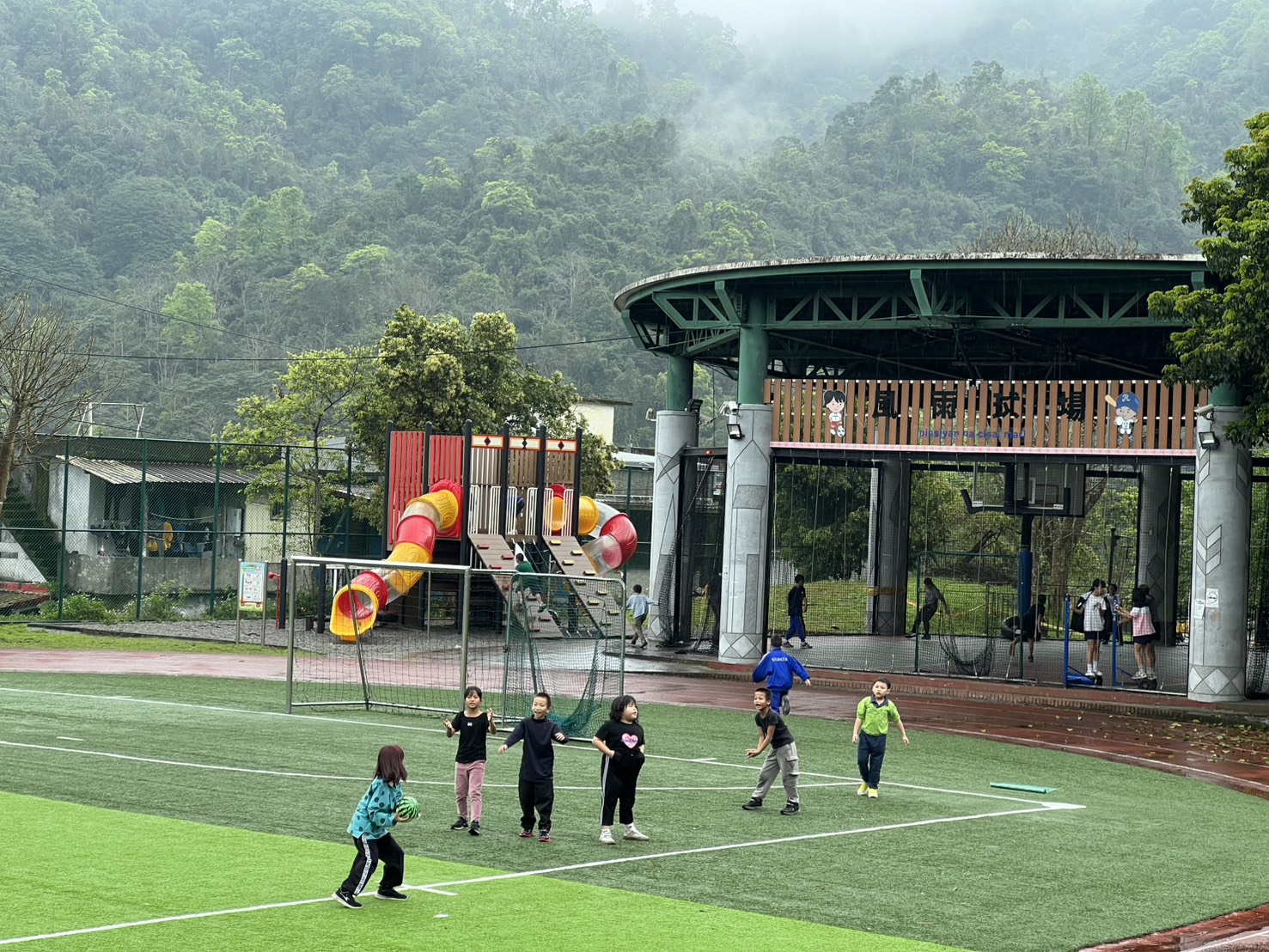 五年級的大孩子,無論男女,當下課鐘聲一響起,無畏風雨便立即的衝到操場上,即便早上的寒溪村下著細雨,操場濕冷,他們仍玩的超盡興,滿頭大汗,臉上掛著笑容!
